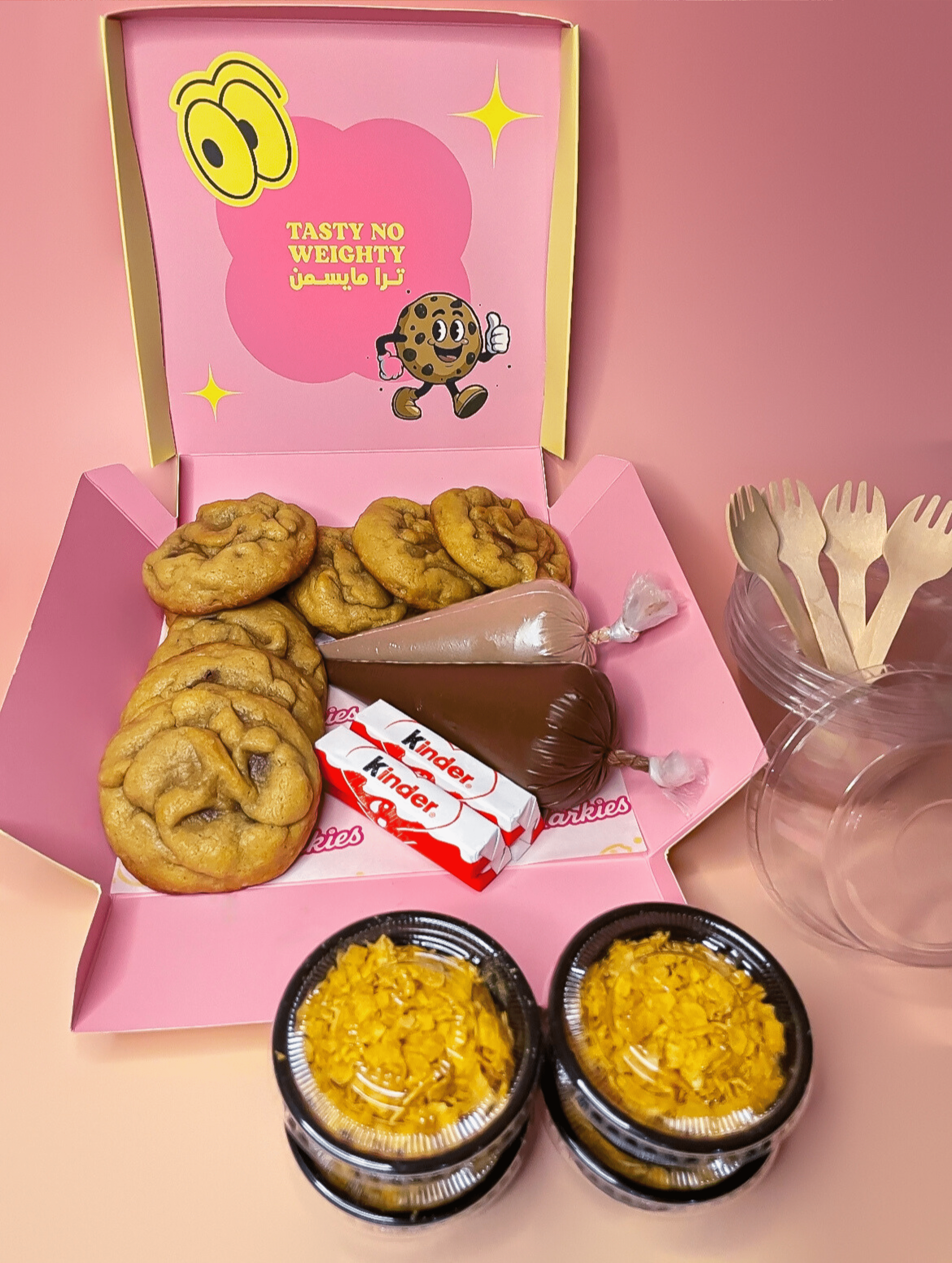 - 2 صوص (شوكولاتة بلجيكية و الصوص الثاني حسب الرغبة).
